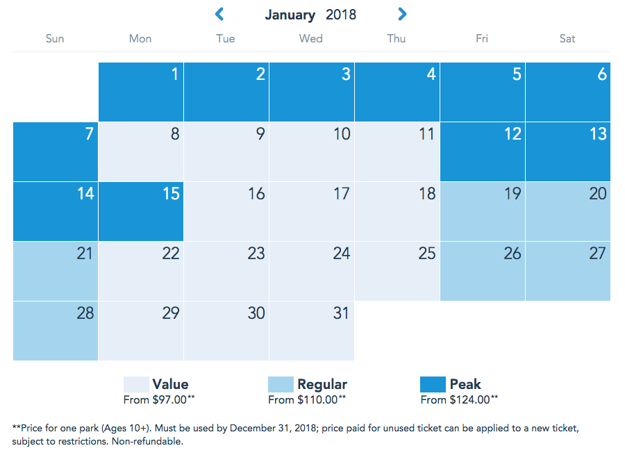 The full breakdown of the peak, regular, and value days are currently as follows: